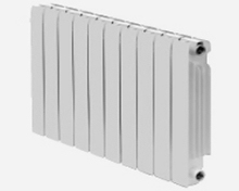 Élément pour radiateur en aluminium injecté dans les installations d'eau chaude jusqu'à 6 bar et 110°C, de 425 mm de hauteur, avec frontal plan et émission calorifique de 74,7 kcal/h pour une différence moyenne de température de 50°C entre la radiateur et le milieu ambiant, selon NF EN 442-1. |