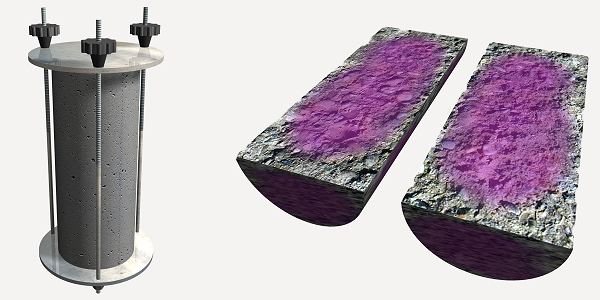 | Détermination de la profondeur de carbonatation dans une éprouvette témoin extraite de l'élément structural existant en béton. | ||